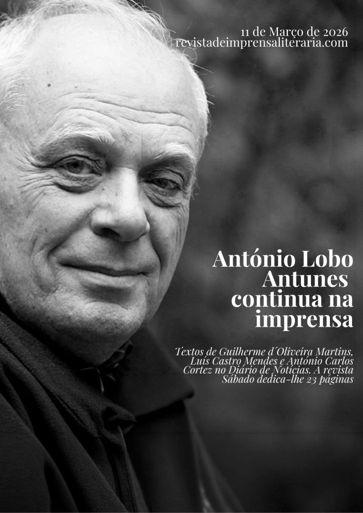 Fecho o JN e abro o DIÁRIO DE NOTÍCIAS para encontrar o texto de Guilherme d´Oliveira Martins sobre António Lobo Antunes. Começa assim: “Era um amigo sincero que nunca esquecerei”. Ao lado, companheiro de página, Luís Castro Mendes também evoca o escritor: “Onde Saramago escolhe a concisão das palavras e a surpresa das parábolas, onde Lídia Jorge prefere falar connosco em voz mais baixa e intimista, onde Teolinda Gersão fala do que sabe com serenidade minuciosa, António Lobo Antunes, pelo contrário, escolhe envolver-se nesse torrencial fluxo de palavras com que tenta alcançar a velocidade da vida, fazendo-nos pensar em Faulkner ou em Céline (os mais óbvios) e, com toda a sua diferença de pontos de vista, até em Agustina, a irónica.”. Também António Carlos Cortez: “António Lobo Antunes, poeta? Sim, talvez poeta. Não sei se numa qualquer placa de homenagem, neste país em que já nada se lê que seja literatura desafiante; neste país rendido à lógica da não-agressão entre o leitor sem chaves para rodar qualquer texto difícil e onde o escritor aceitou, há muito, não ser exigente para com a arte de escrever, Lobo Antunes dispensará talvez essa espécie de último reconhecimento: o de ser poeta. E, no entanto, se a prosa do autor de valer para o leitor do hipotético-futuro, será ainda de poesia que teremos de falar.”.